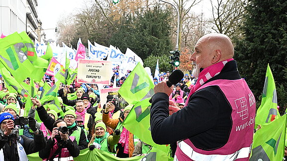 Über 500 Beschäftigte des öffentlichen Dienstes demonstrierten in Magdeburg für faire Bezahlung, bessere Perspektiven und Entlastung im Rahmen der Einkommensrunde.